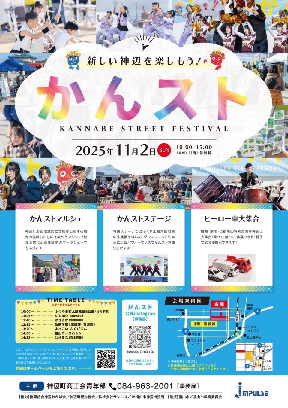 2025.10.28 神辺町 商工会 新着情報 「かんなべストリートフェスティバル… 神辺町商工会青年部が主催するマルシェ型複合イベント「かんなべストリートフェスティバル」が2025年11月2日(日)開催されます。このイベントは、神辺町の「美味しいもの」や「ものづくり文化」に触れることができる新感覚のイベントとして昨年スタートし、前回は15,000人が来場。今年は神辺駅前に新設された川南1… 神辺町商工会青年部が主催するマルシェ型複合イベント「かんなべストリートフェスティバル」が2025年11月2日(日)開催されます。このイベントは、神…