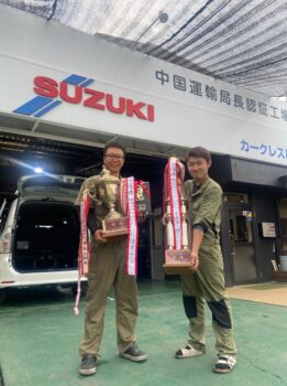 整備士の技術を競う県大会で、神辺町商工会員事業所の2名が優勝!(神辺町商工会)