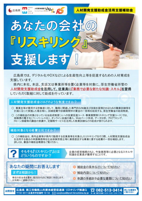- 令和7年度広島県人材開発支援助成金活用支援補助金についてのお知らせ【広島県】