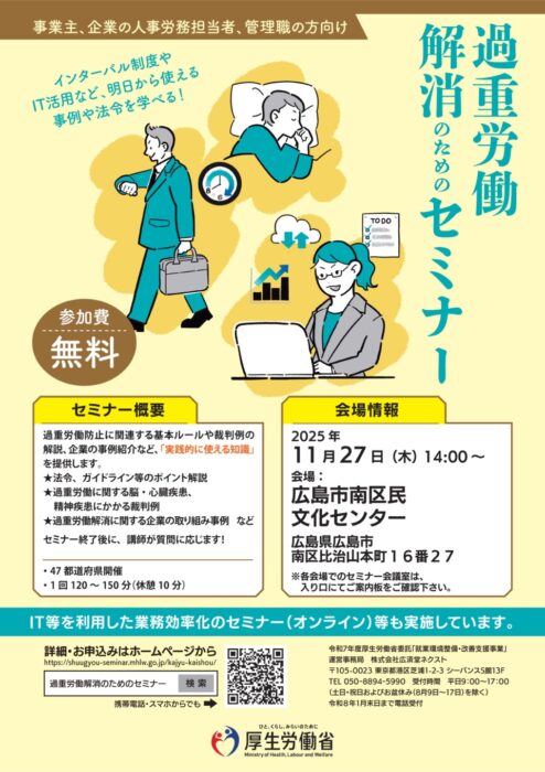 - 過重労働解消セミナー・外国人労働者安全衛生管理セミナー開催のお知らせ【広島県労働基準協会】