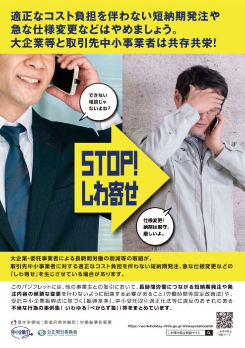 皆さまにおかれましても、職場における働き方の改善や労働時間の適正化に向けた取組にご協力をお願いいたします。
