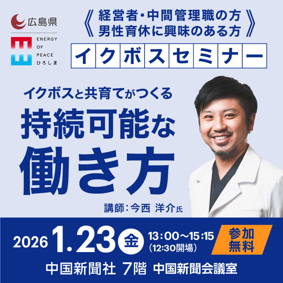 【広島県 1/23開催】「イクボスと共育てがつくる持続可能な働き方」お申込み受付中!