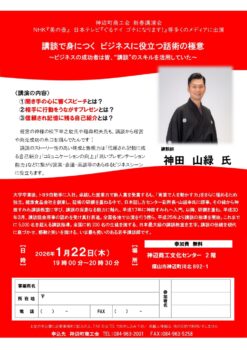 「話すことが苦手」「自分の強みをうまく伝えられない」「もっと印象に残るプレゼンがしたい」。そんな悩みを抱える事業者の方にこそ、ぜひ参加していただきたい講演会です。新しい年の始まりに、講談の世界から学ぶ“伝える力”を身に付け、ビジネスの可能性を広げてみませんか。