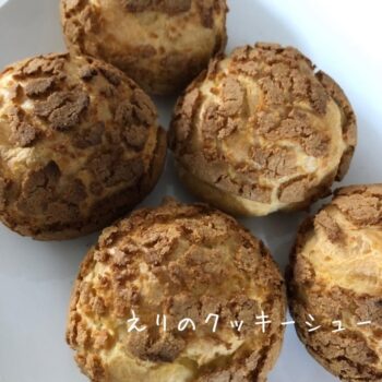 また土日は「パンの日」や「スイーツの日」と題して、テーマに沿った様々な商品が登場。国産小麦を使った手ごねパンや、クッキーシューなど、店主のひらめきから生まれるオリジナルメニューが登場します。なかでも「クッキーシューの日」に登場する「えりのクッキーシュー」(350円)は、これを求めて遠方からも足を運ぶ人がいるほどの人気商品。ザクザク食感の生地にさっぱりとした豆乳ベースのカスタードを合わせた店主の田中さん自慢の一品です。