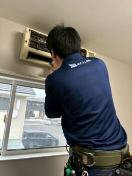 エアコンクリーニングの様子。プロならではの技が光ります